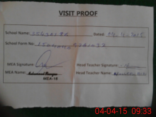 | Attendance Register | Head Teacher | MEA with School | Visit Proof |