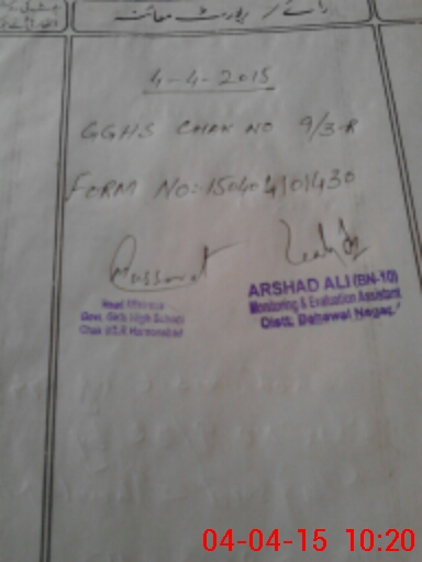 | EMIS Code: 31140026 | Name of School: GGHS CHAK NO 9/3-R | |||