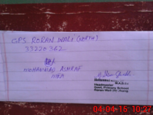 | District: JHANG | Tehsil: JHANG | Markaz: RORAN WALI - MALE | Level: Primary | |
