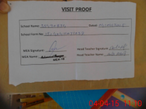 | Attendance Register | Head Teacher | MEA with School | Visit Proof |