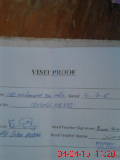 | Attendance Register | Head Teacher | MEA with School | Visit Proof |