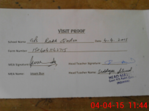 | Attendance Register | Head Teacher | MEA with School | Visit Proof |