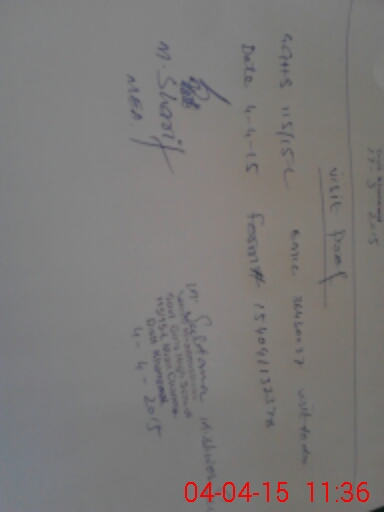 | Monitoring Date: 04-04-2015 | Start Time: 04-04-2015 11:19 AM | End Time: 04-04-2015 11:44 AM | Name of MEA: MU**** SH**** | |