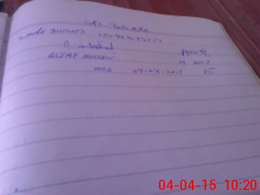 | Monitoring Date: 04-04-2015 | Start Time: 04-04-2015 09:32 AM | End Time: 04-04-2015 10:20 AM | Name of MEA: Al**** Hu**** BN**** | |