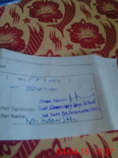 | Name: Za**** An**** Designation: (School Headmaster's/Headmistress's) S.S.T.(GEN) Phone/Cell Number: 03**** |