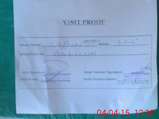 | Attendance Register | Head Teacher | MEA with School | Visit Proof |