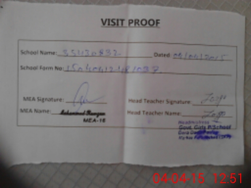| Attendance Register | Head Teacher | MEA with School | Visit Proof |