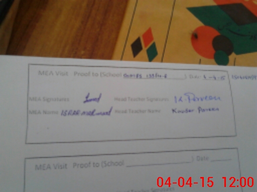 | Attendance Register | Head Teacher | MEA with School | Visit Proof |