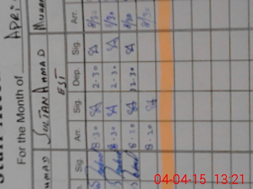 | Monitoring Date: 04-04-2015 | Start Time: 04-04-2015 01:11 PM | End Time: 04-04-2015 01:37 PM | Name of MEA: BA**** HU**** SH**** | |