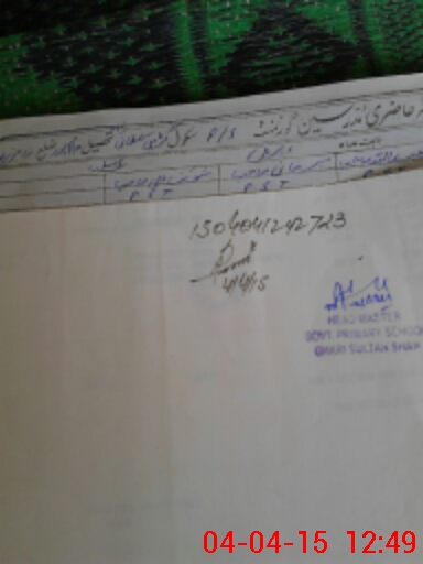 | Name: MU**** Ab**** Designation: (School Headmaster's/Headmistress's) HEADMASTER Phone/Cell Number: 03**** |