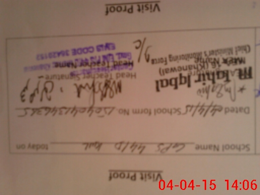 | Attendance Register | Head Teacher | MEA with School | Visit Proof |