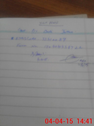 | Monitoring Date: 04-04-2015 | Start Time: 04-04-2015 02:23 PM | End Time: 04-04-2015 02:42 PM | Name of MEA: Fa**** Ah**** Ej**** (R**** | |