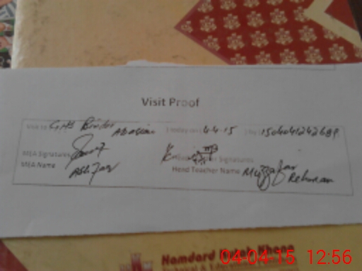 | Attendance Register | Head Teacher | MEA with School | Visit Proof |
