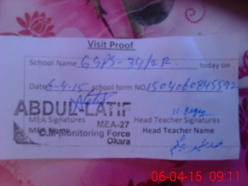 | Attendance Register | Head Teacher | MEA with School | Visit Proof |