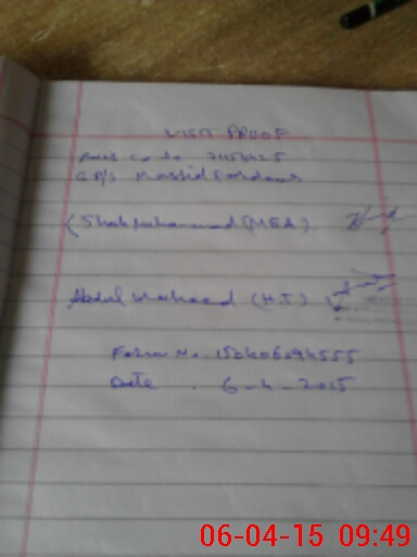 | Monitoring Date: 06-04-2015 | Start Time: 06-04-2015 09:24 AM | End Time: 06-04-2015 09:49 AM | Name of MEA: Sh**** Mu**** | |
