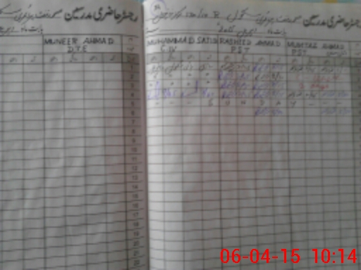 | CNIC | Full Name | Designation | R/C | Absence During Last Calender Month |