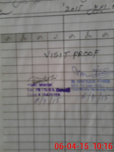 | Monitoring Date: 06-04-2015 | Start Time: 06-04-2015 09:52 AM | End Time: 06-04-2015 10:19 AM | Name of MEA: M.Ra**** Kh**** (R**** | |