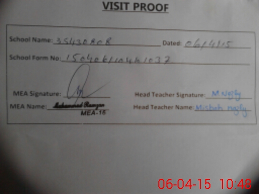 | Certified that this School was Inspected by the Undersigned MEA/DMO Today and the Information Stated Above is as Per Record. | |||||