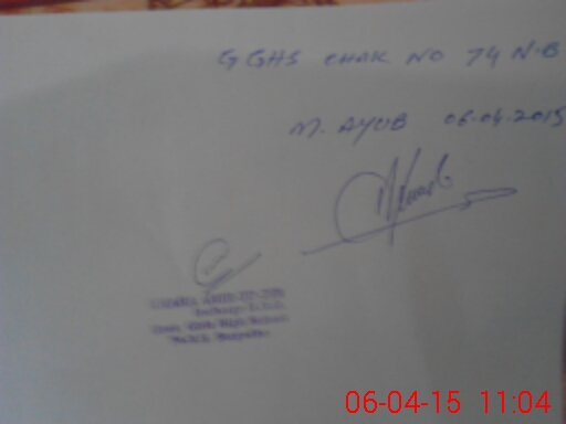 | EMIS Code: 38420231 | Name of School: GGHS CHAK NO.74 NB | |||
