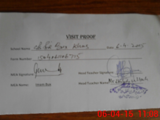 | EMIS Code: 32430091 | Name of School: GPS PIR BAKHSH KHAS | |||