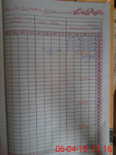 | CNIC | Full Name | Designation | R/C | Absence During Last Calender Month |