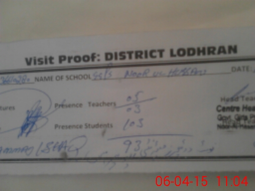 | District: LODHRAN | Tehsil: LODHRAN | Markaz: LODHRAN - FEMALE | Level: Primary | |