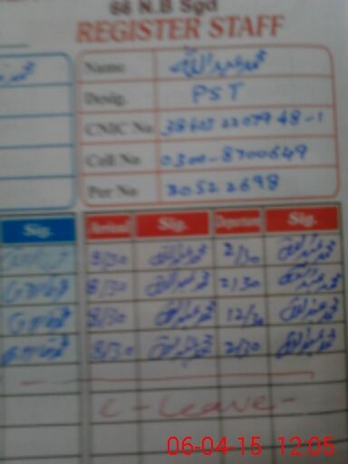 | Name: SO**** AF**** Designation: (School Headmaster's/Headmistress's) SST (SCIENCE) Phone/Cell Number: 03**** |