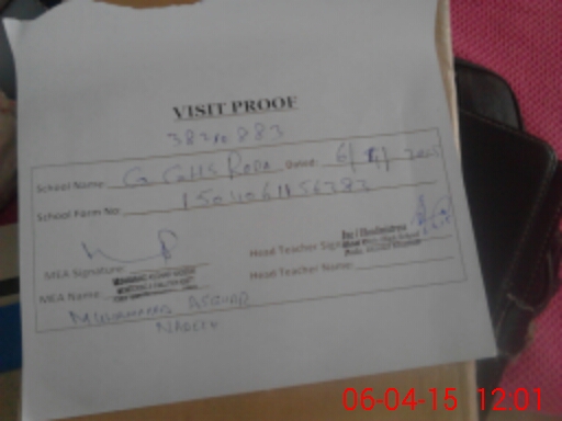 | Attendance Register | Head Teacher | MEA with School | Visit Proof |