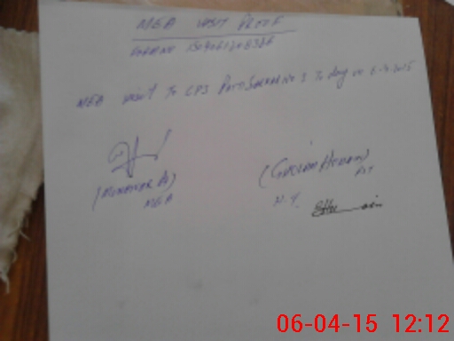 | Monitoring Date: 06-04-2015 | Start Time: 06-04-2015 11:29 AM | End Time: 06-04-2015 12:18 PM | Name of MEA: Mu**** Al**** ex**** | |