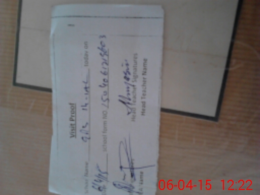 | Attendance Register | Head Teacher | MEA with School | Visit Proof |