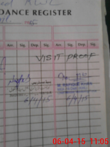 | Monitoring Date: 06-04-2015 | Start Time: 06-04-2015 10:47 AM | End Time: 06-04-2015 11:06 AM | Name of MEA: M.Ra**** Kh**** (R**** | |