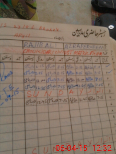 | CNIC | Full Name | Designation | R/C | Absence During Last Calender Month |