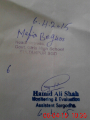 | District: SARGODHA | Tehsil: SHAHPUR | Markaz: SECONDARY-WING | Level: High | |