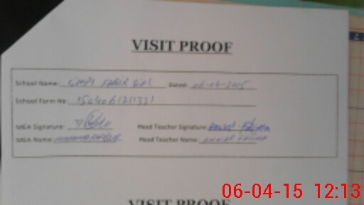 | Attendance Register | Head Teacher | MEA with School | Visit Proof |