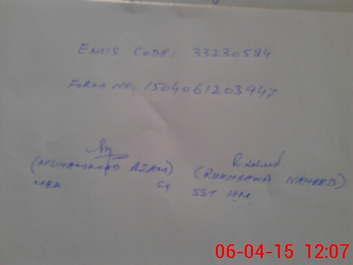 | Name: Ru**** Na**** Designation: (School Headmaster's/Headmistress's) SST Phone/Cell Number: 03**** |