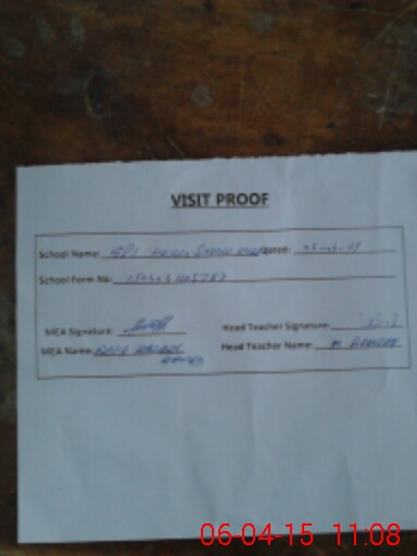 | Attendance Register | Head Teacher | MEA with School | Visit Proof |