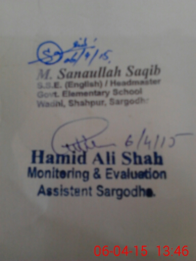 | District: SARGODHA | Tehsil: SHAHPUR | Markaz: WADHI - MALE | Level: Middle | |