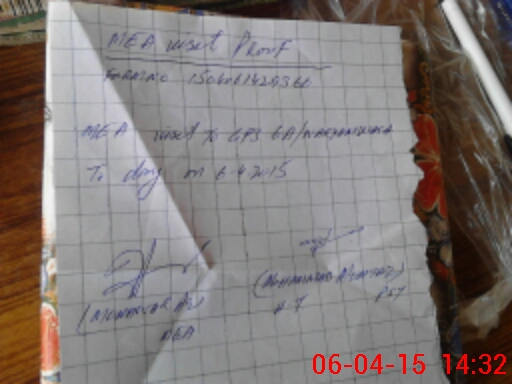 | Monitoring Date: 06-04-2015 | Start Time: 06-04-2015 02:04 PM | End Time: 06-04-2015 02:37 PM | Name of MEA: Mu**** Al**** ex**** | |