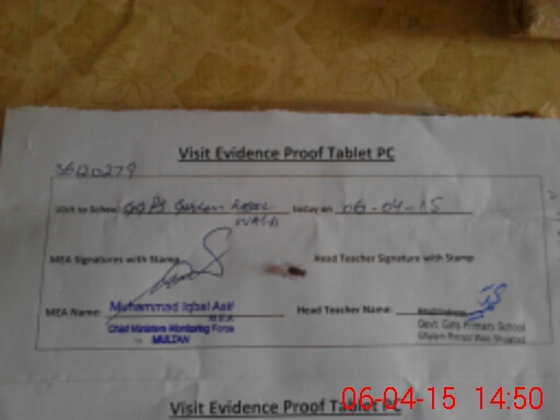 | Attendance Register | Head Teacher | MEA with School | Visit Proof |