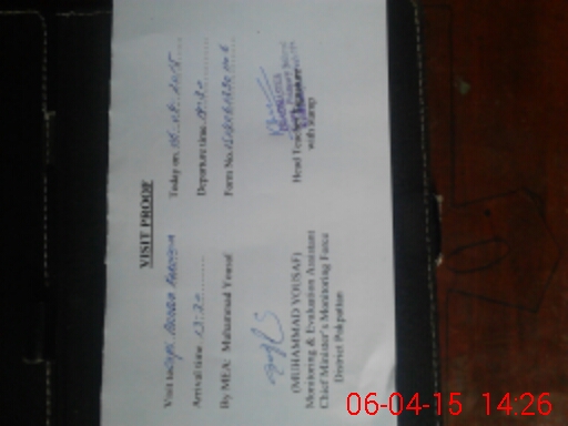 | School Visited by School Health & Nutrition Supervisor (No. of Visits) | 1 | Name1: | Hafiz Tauqeer | Name2: | |