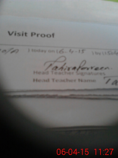 | School Visited by School Health & Nutrition Supervisor (No. of Visits) | 1 | Name1: | Nasir Shaheen | Name2: | Nil |