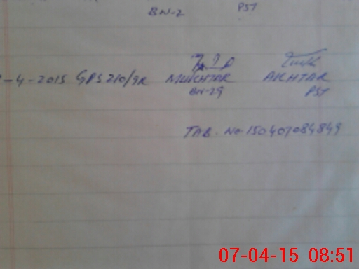 | Monitoring Date: 07-04-2015 | Start Time: 07-04-2015 08:36 AM | End Time: 07-04-2015 08:54 AM | Name of MEA: Mu**** ah**** BN**** 29 | |