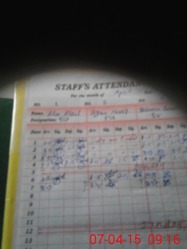 | CNIC | Full Name | Designation | R/C | Absence During Last Calender Month |