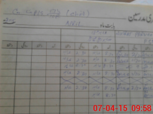 | Monitoring Date: 07-04-2015 | Start Time: 07-04-2015 09:39 AM | End Time: 07-04-2015 10:02 AM | Name of MEA: M.Ra**** Kh**** (R**** | |