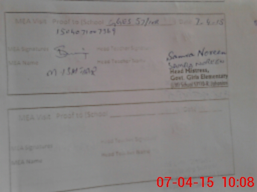 | Attendance Register | Head Teacher | MEA with School | Visit Proof |