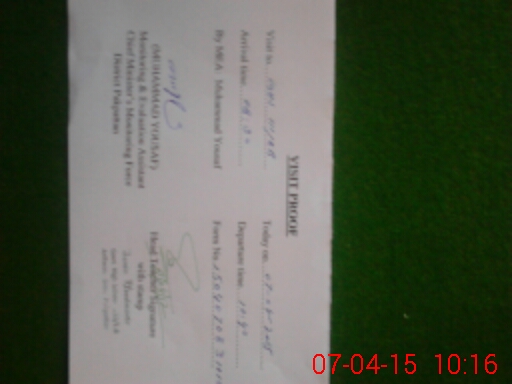 | School Visited by School Health & Nutrition Supervisor (No. of Visits) | 1 | Name1: | Abdul Rauf Khan | Name2: | |