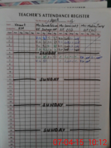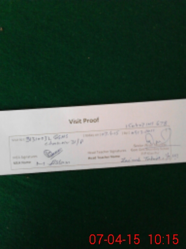 | Remarks (Use Separate Page if Required): Students enrollment not yet carried as unable to entry made therein No administration visit found during March 2015 Books issued to the school but not enrollment available or carried out students name in new classes as such unable to complete the requisite column NSB and FTF records not available and provided at the time of inspection Found very poor administration of the school Advised to complete their requisite records and perform their duties according to their responsibilities | |||||