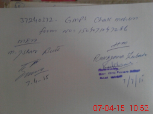 | EMIS Code: 37240372 | Name of School: GMPS CHAK MEHUN | |||
