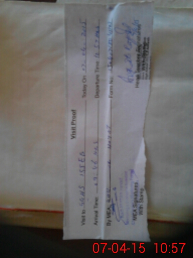 | Monitoring Date: 07-04-2015 | Start Time: 07-04-2015 10:04 AM | End Time: 07-04-2015 11:12 AM | Name of MEA: Kh**** Ha**** (R**** | |