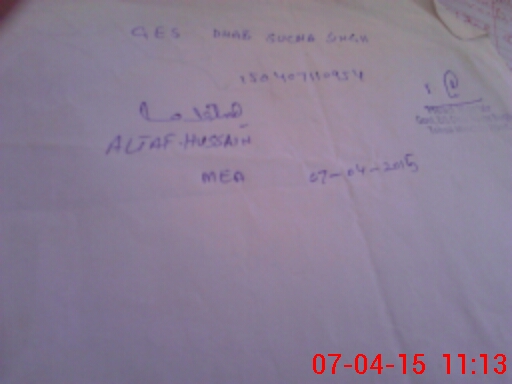 | Monitoring Date: 07-04-2015 | Start Time: 07-04-2015 10:45 AM | End Time: 07-04-2015 11:19 AM | Name of MEA: Al**** Hu**** BN**** | |